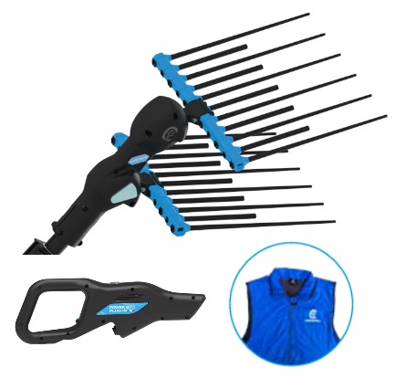 Il suo movimento ellittico brevettato permette di lavorare su ogni tipo di ulivo, assicurando una raccolta rapida e delicata sulle piante. Con rebbi in carbonio, leggeri e resistenti, assicura una maneggevolezza ottimale e una lunga durata.