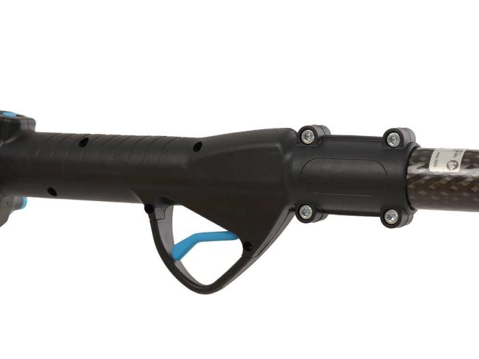 - Sistema Plug-In: Per l’utilizzo, la batteria viene rimossa dalla forbice e l’asta si collega direttamente al corpo forbice, la batteria viene poi reinserita alla base dell’asta.