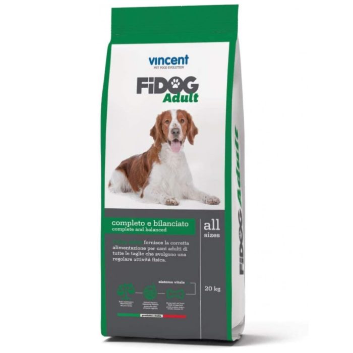 - 1x Sacco da 20 Kg di crocchette per cani adulti Vincent Fidog Balanced.