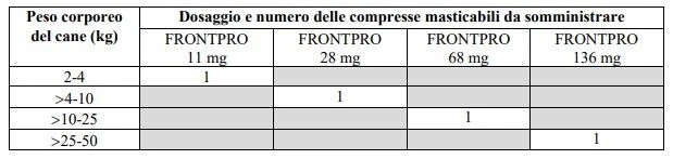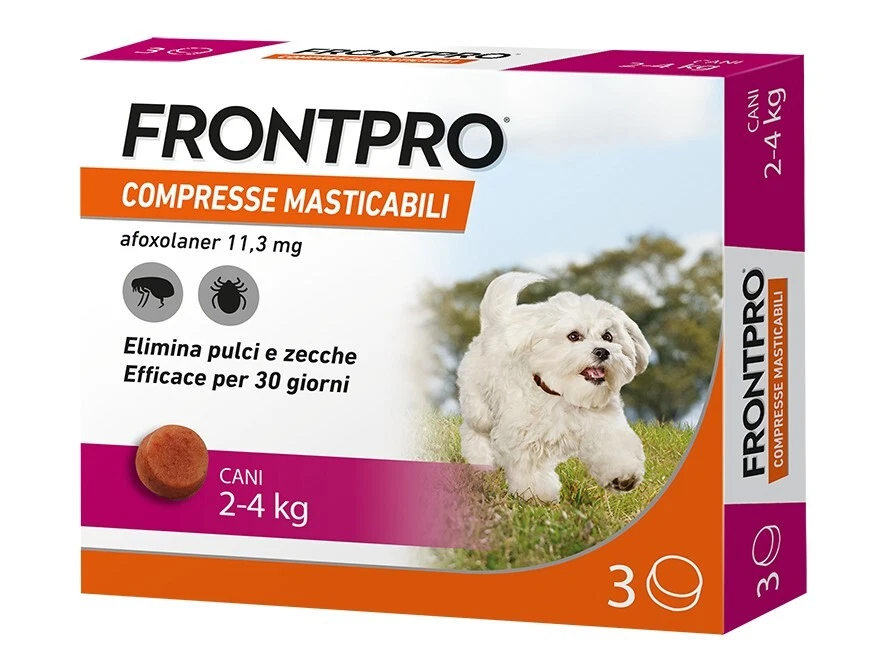 - 3 Compresse MasticabiliĀ di FrontPro 2-4 Kg (11,3 mg di Afoxolaner per compressa)
