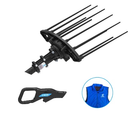 • Testa di Raccolta Efficiente: La testa è dotata di rebbi flessibili in tecnopolimero rinforzato al carbonio. Questi rebbi effettuano un movimento ellittico che scuote i rami in modo efficace ma delicato, senza danneggiare la pianta.