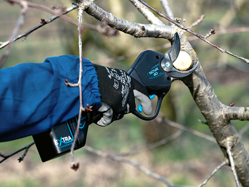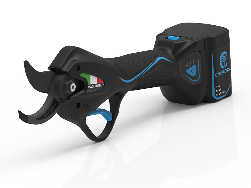 La Campagnola NOVA 40 è una forbice elettrica a BATTERIE PLUG-IN che rappresenta il modello di punta della serie NOVA, ideale per la potatura professionale di vigneti, frutteti e uliveti, capace di effettuare tagli fino a 40 mm di diametro.